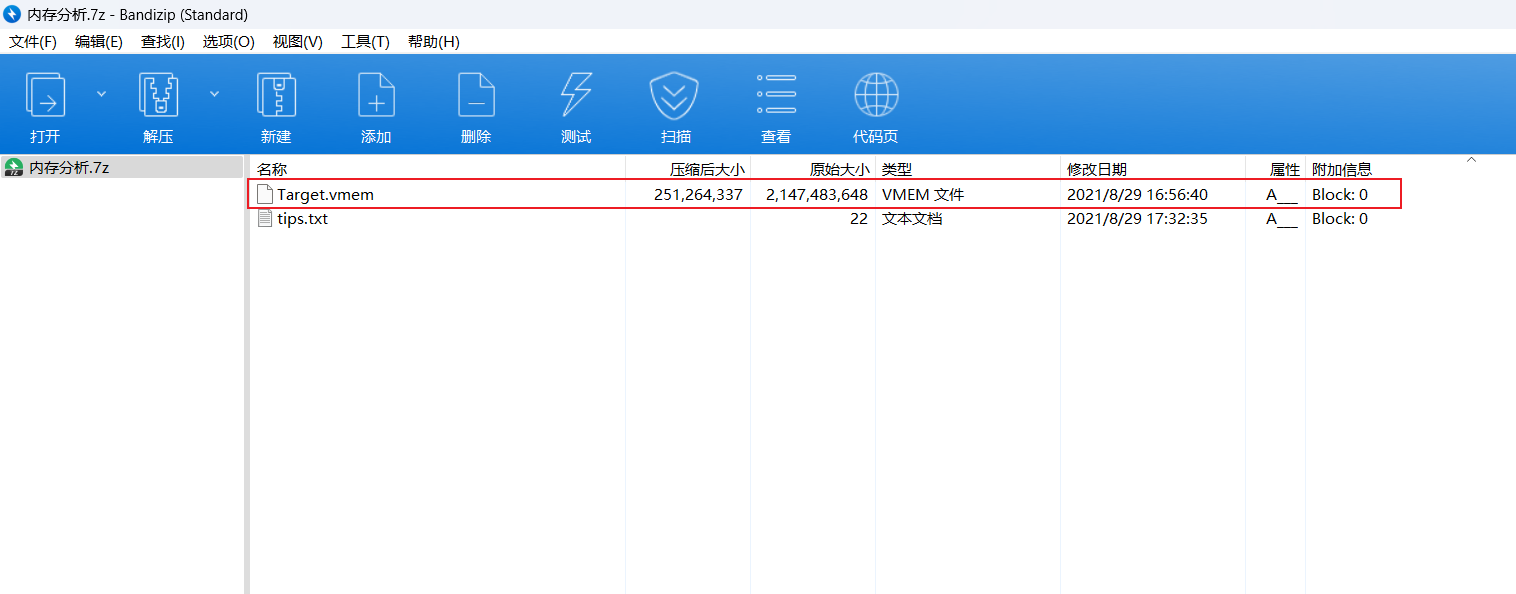 首先,我们下载附件之后,看到压缩包里有一个vmem格式的文件
