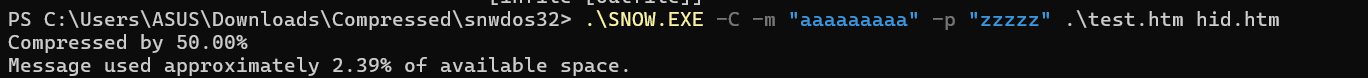 1 | steg86 embed bash bash.steg <<< "The hidden message" |