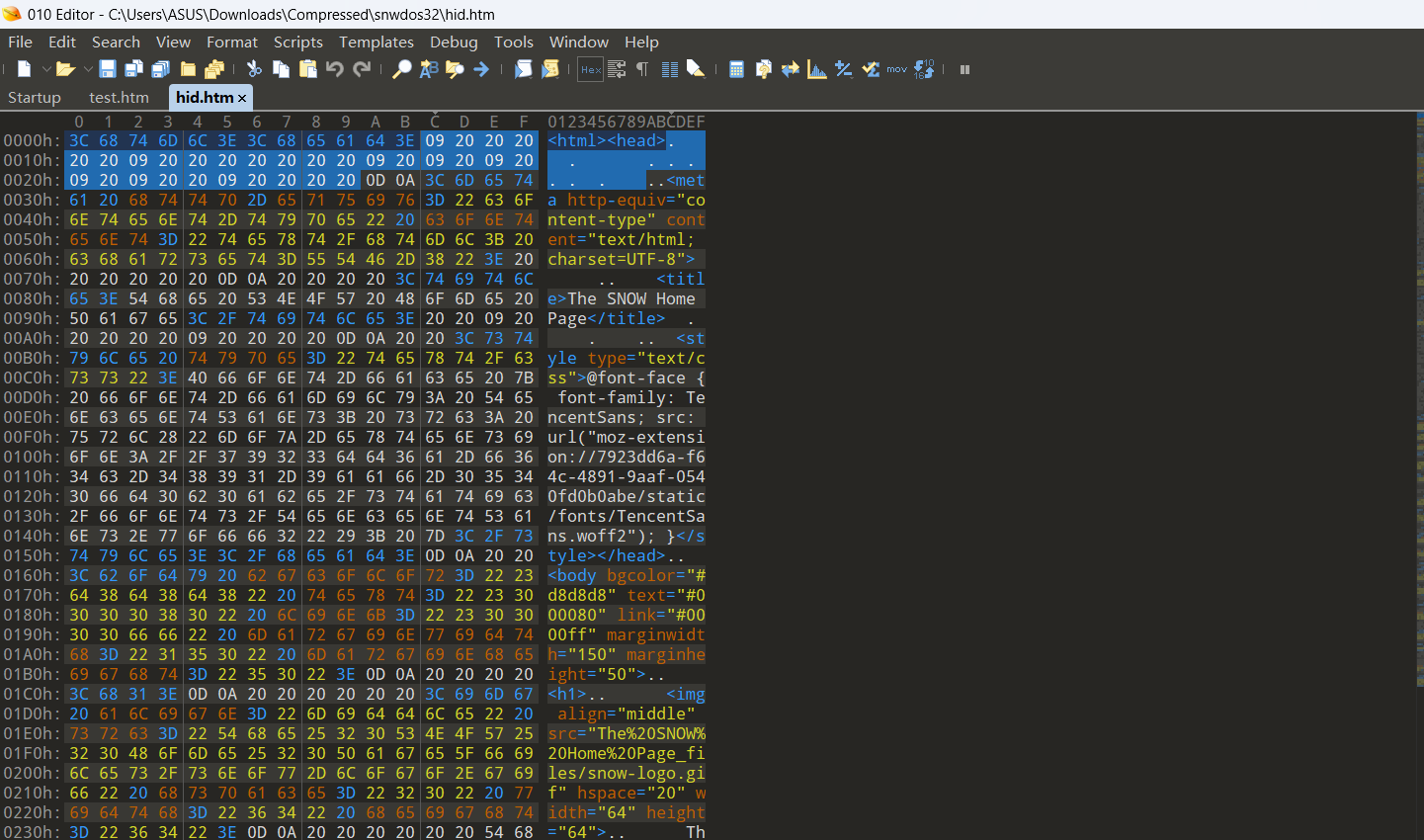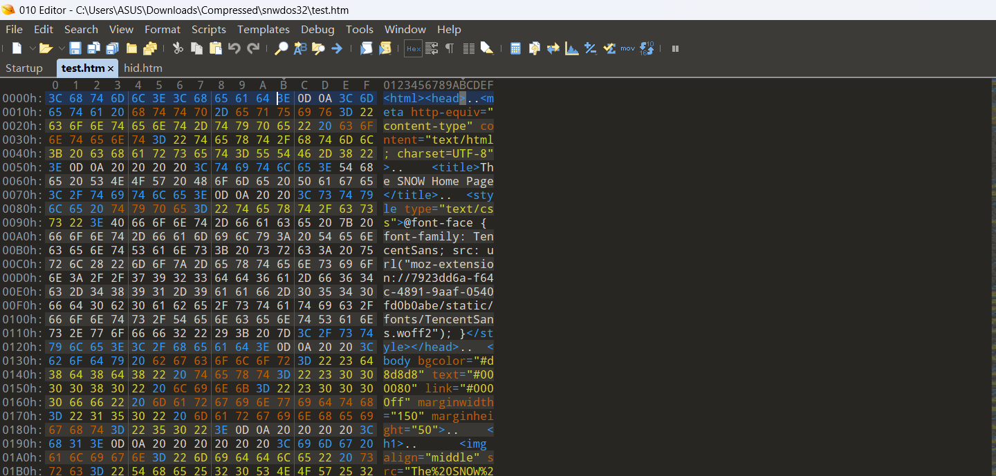对比原始的HTML文件和嵌入数据的文件,视觉上没有任何差别