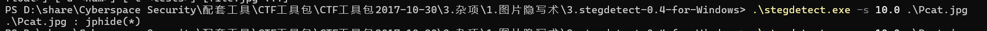 1 | .\stegdetect.exe -s 10.0 *.jpg |