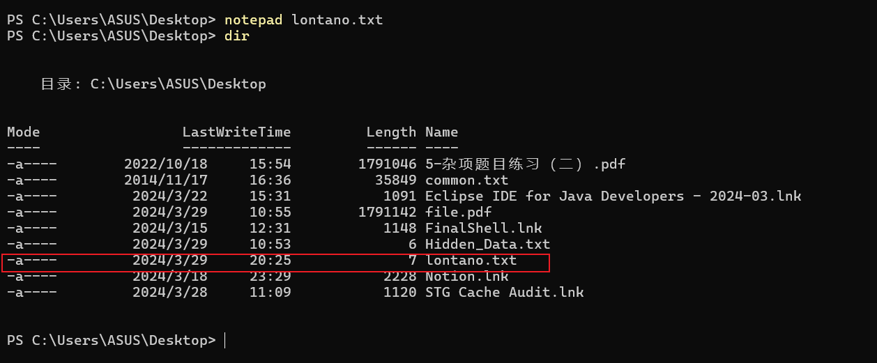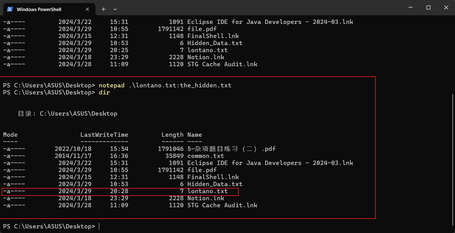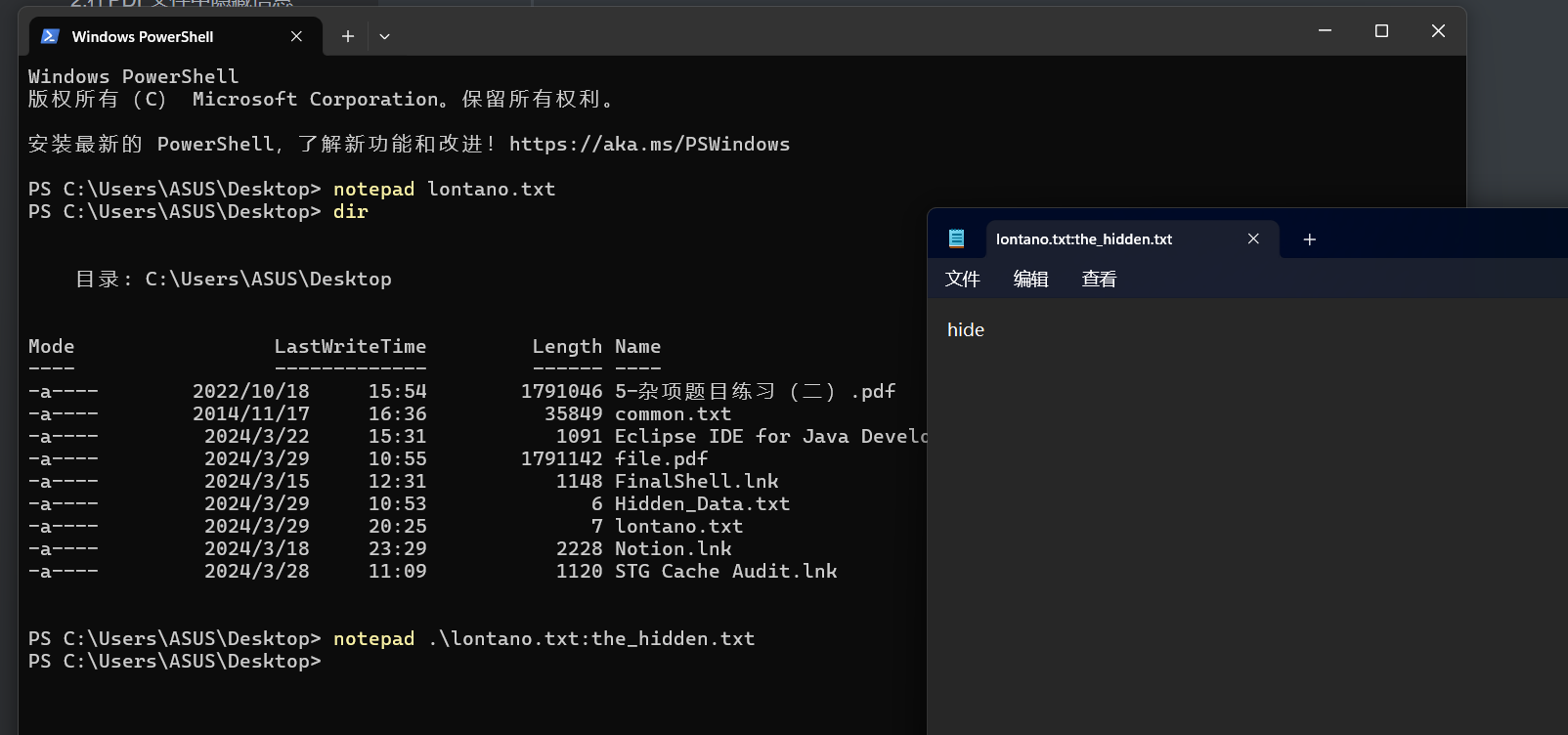 接下来,我们就可以在卷影副本中创建并隐藏文件了,还会演示脱离文件系统访问这个文件