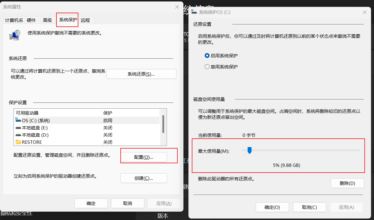 我们可以右键此电脑->属性->系统保护->配置中设置卷影副本分配的最大空间