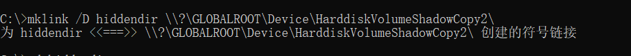 1 | mklink /D hiddendir \\?\GLOBALROOT\Device\HarddiskVolumeShadowCopy2\ |