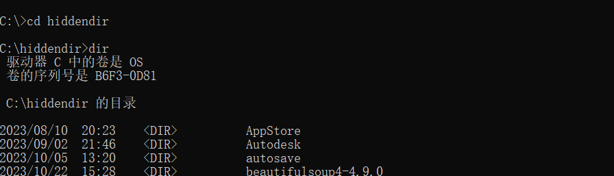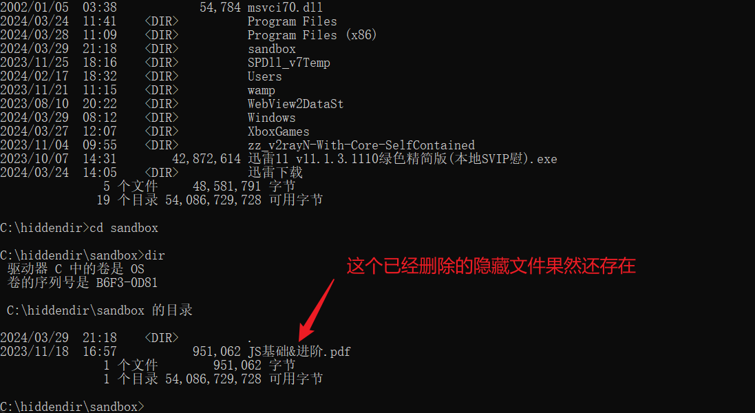 进入hiddendir目录,可以看到我们之前已经删除的PDF文件
